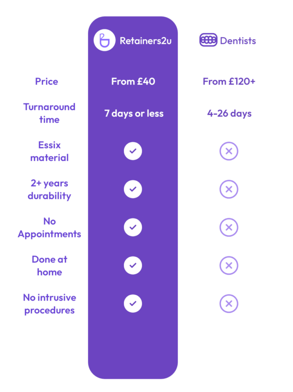 It was all super simple, I needed a replacement set of upper retainers and all dentists were charging upwards of 100. Retainers 2 I charged 40 quid (on a deal, I think 50 normally which is still a steal) for everything. I ordered the kit, came in 2 days and was dead simple. Sent it off on the monday and got it back on Sunday (over a bank holiday weekend). They’re comfortable and fit well.